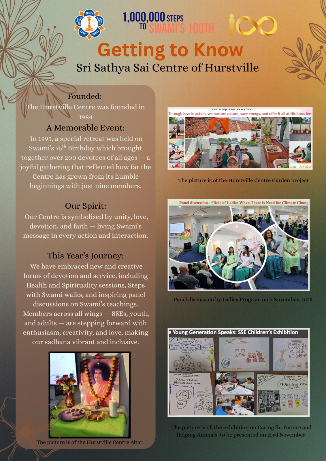 NSW Region: Flood relief efforts in Mid-North Coas…July 5, 2025!! NEW !! Taree and surrounding Regions of New South Wales have recently been impacted by devastating floods with the livelihood of residents in these communities being disrupted, with significant damage to homes, animal farms and loss of belongings. The NSW Region of the Sri Sathya Sai International Organisation of Australia & PNG (SSSIOA) reached out to the community in Taree and discovered ways that members could best assist with flood relief efforts. [more]- Mother’s Day Classic WalkJune 16, 2025The Mother’s Day Classic Walk was again supported nationally by the SSSIO in Australia with groups in 5 states participating in this national community event aimed at raising awareness of, and supporting research to address, breast and ovarian cancer. The Ladies Section of the SSSIO takes the lead in supporting this worthy event. [more]