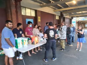 The service activity includes preparing and serving meals by a group of dedicated members to about 25-30 people who come to the venue with a lot of hope and anticipation. The meals include pizza, veggie burgers, rice and curry, pasta, bread rolls, tea and coffee. During major festivals such as Christmas, festive food, drinks and gifts are shared as well.
