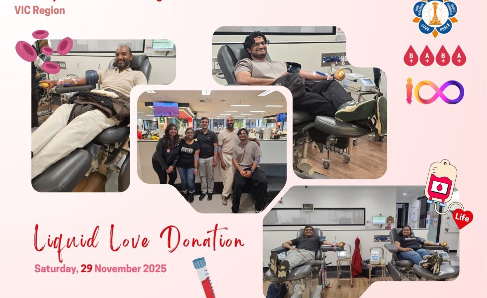 Blood is the very essence of life, a precious resource that cannot be manufactured, but only shared from one human to another. Recognising this vital need, Sri Sathya Sai International Organisation of Australia & PNG, Victoria Region conducted a service initiative: Liquid Love on November 29th at Lifeblood Melbourne.