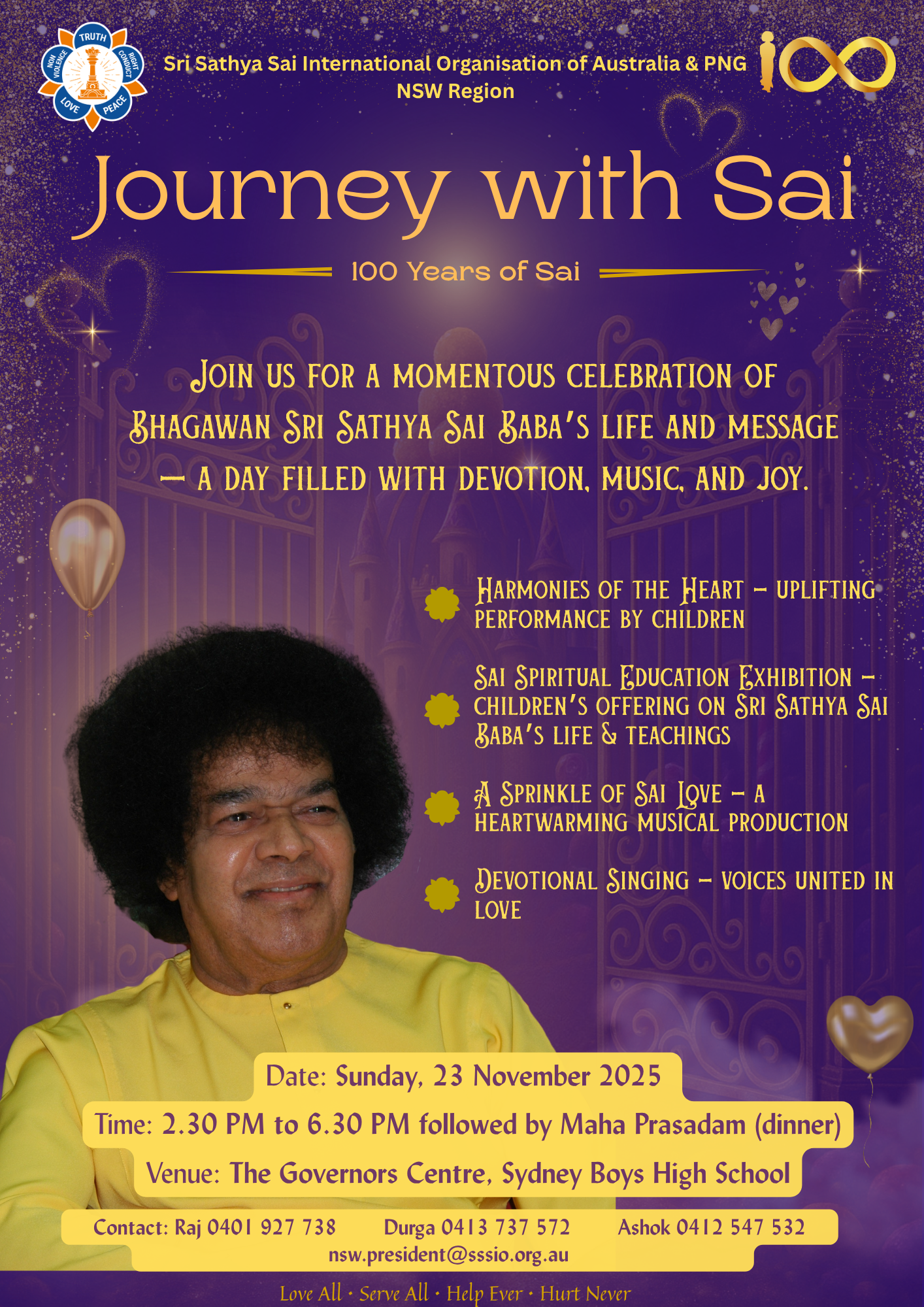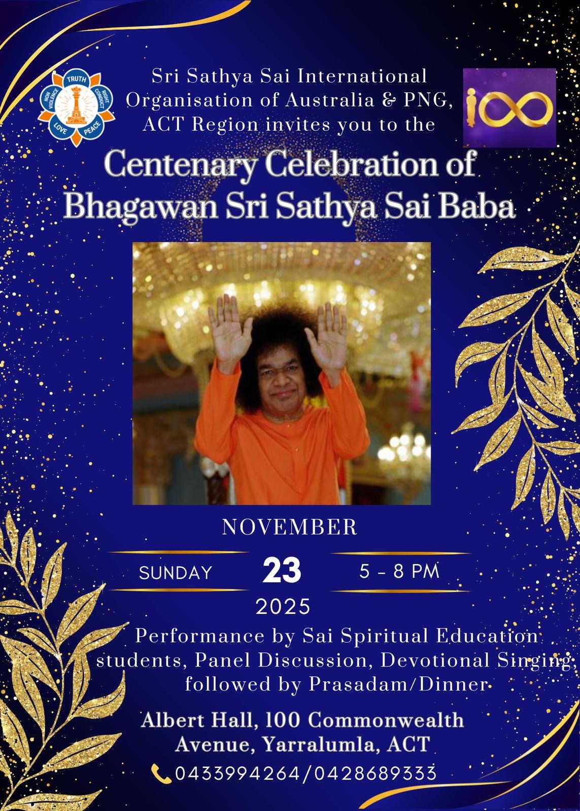 Carlingford NSW Centre’s weekend Spiritual RetreatNovember 14, 2025!! NEW !!The Sri Sathya Sai Centre of Carlingford NSW hosted a spiritually uplifting weekend retreat over the 4th and 5th October. The occasion was filled with a special offering of devotion, unity, and service in celebration of Sai100. [more]