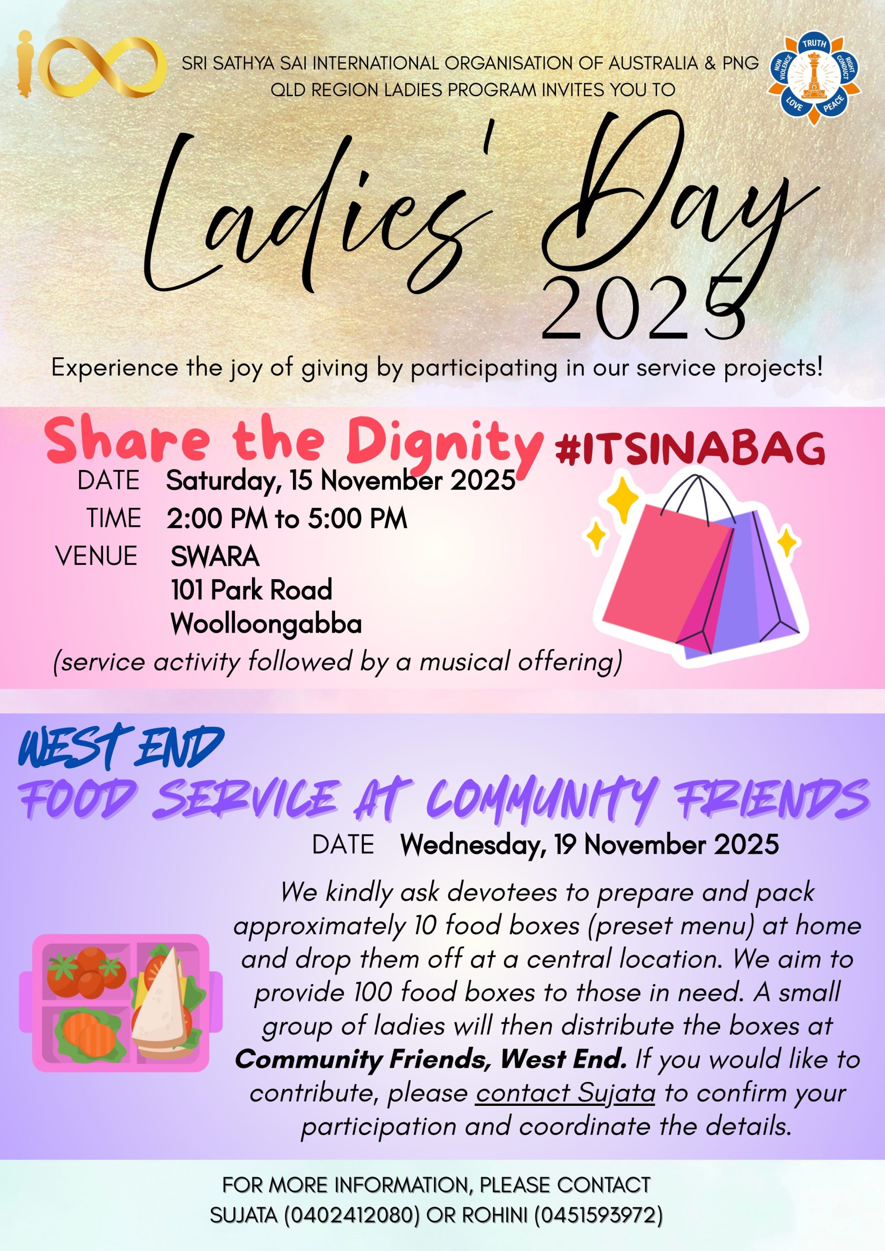 NSW Region: Flood relief efforts in Mid-North Coas…July 5, 2025!! NEW !! Taree and surrounding Regions of New South Wales have recently been impacted by devastating floods with the livelihood of residents in these communities being disrupted, with significant damage to homes, animal farms and loss of belongings. The NSW Region of the Sri Sathya Sai International Organisation of Australia & PNG (SSSIOA) reached out to the community in Taree and discovered ways that members could best assist with flood relief efforts. [more]- Mother’s Day Classic WalkJune 16, 2025The Mother’s Day Classic Walk was again supported nationally by the SSSIO in Australia with groups in 5 states participating in this national community event aimed at raising awareness of, and supporting research to address, breast and ovarian cancer. The Ladies Section of the SSSIO takes the lead in supporting this worthy event. [more]